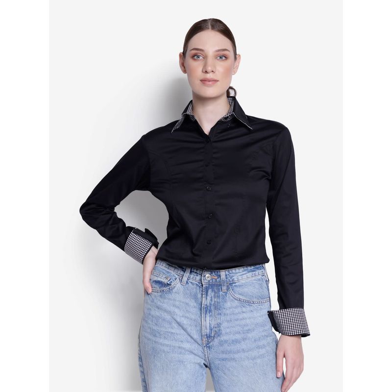 The Adey Double Collar Shirt is made from a lightweight super soft breathable fabric, ensuring a comfortable and flattering fit. This stylish shirt features zip cuffs, a fold-down double collar, and printed details on the collar and cuff. The design boasts a feminine shape with clean lines and seams, with a hidden full-zipper for a contoured fit without gaping between buttons.